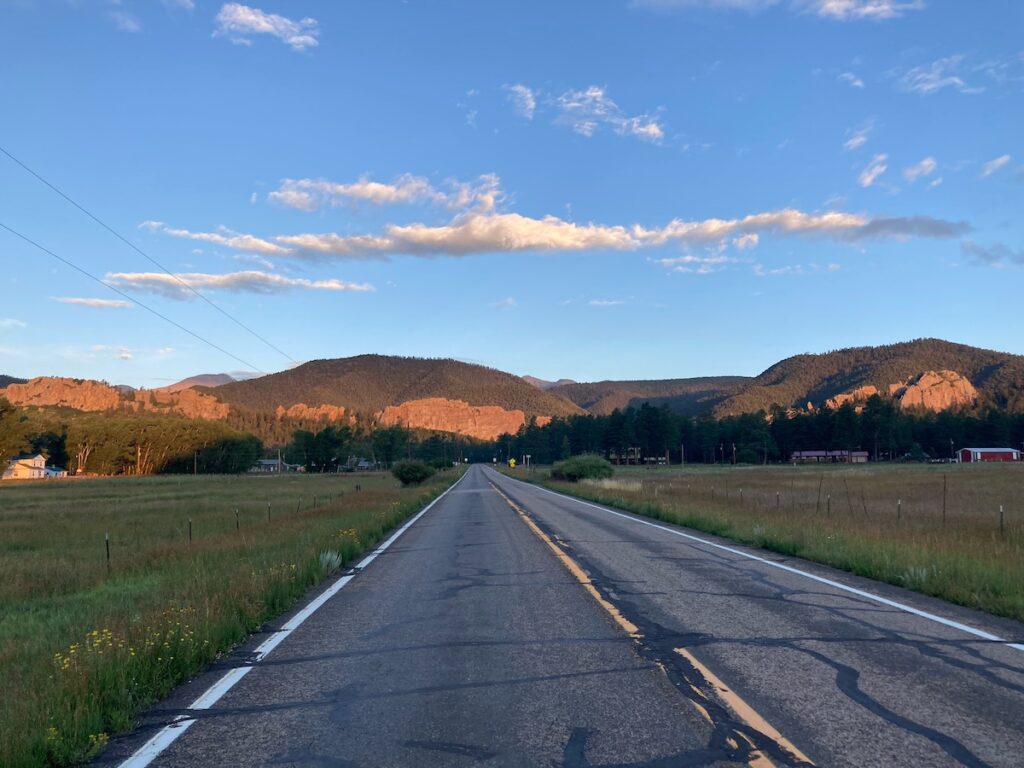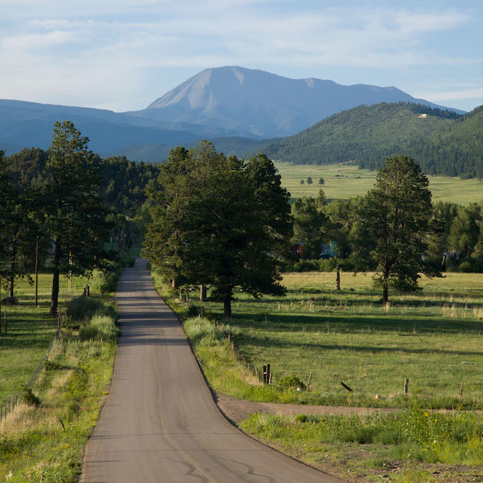 The road south, county road 13, runs a few miles with a steady, moderate elevation rise through open country until the road plunges down a hill to the junction with C.R. 12, the Torres road. Turn right to follow the Torres road or left to go to Tercio. On the Torres road you can ride in a loop if you stay right at the first fork and then stay left at each subsequent turn, bringing you back to the junction with C.R. 13. If you take C.R. 13 to Tercio the road runs a couple of miles until it dead-ends next to the ghost-town’s cemetery (which is worth a visit). From the cemetery if you look down the road past the gate you can see the old abandoned mining company store further down the valley. Unfortunately the road is gated and trespassing is prohibited. Wildlife viewing on the Tercio road includes Elk, bobcat, and the occasional bear, all of which are most likely seen around dusk.